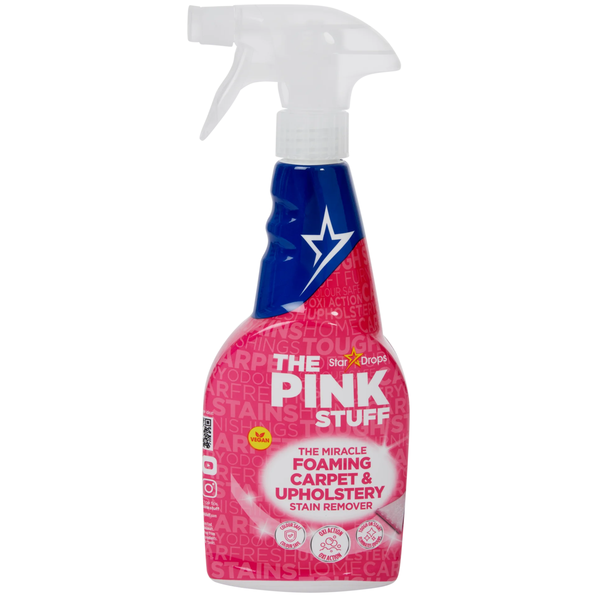 The Pink Stuff Foaming Carpet & Upholstery Stain Remover to skuteczny środek czyszczący w sprayu, przeznaczony do usuwania plam i zabrudzeń z dywanów, tapicerki, wykładzin oraz mebli tapicerowanych. Jego aktywnie pieniąca się formuła OXI wnika głęboko w strukturę tkanin, pomagając usunąć nawet trudne plamy z czerwonego wina, kawy, soków czy tłuszczu, a także neutralizuje nieprzyjemne zapachy.
