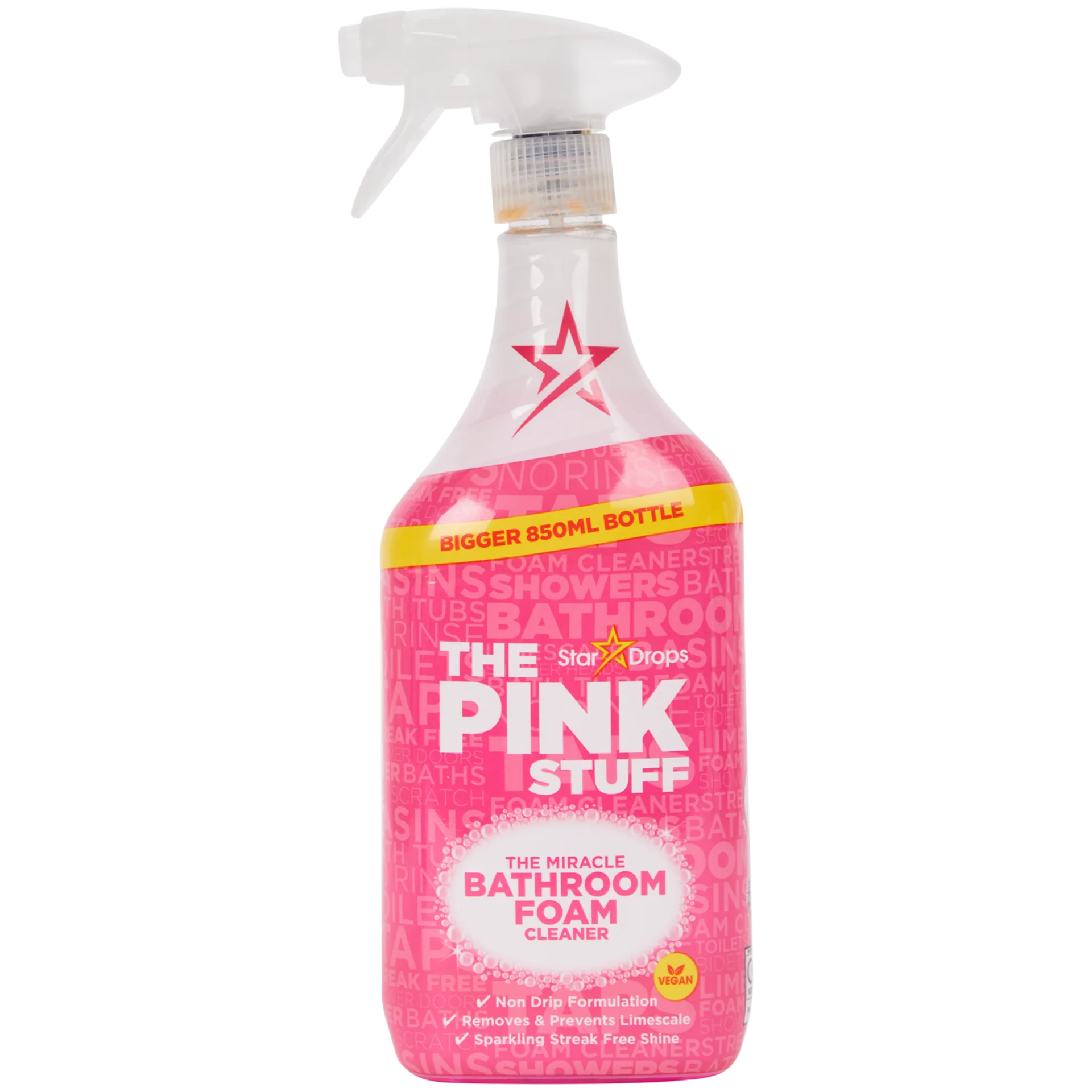 The Pink Stuff BATHROOM FOAM to skuteczny środek do czyszczenia łazienki w formie pianki lub sprayu, zaprojektowany do usuwania zabrudzeń typowych dla łazienek. Jego formuła nie kapie i dobrze przylega do powierzchni, co ułatwia usuwanie osadów z mydła, kamienia i tłustych śladów bez smug.
