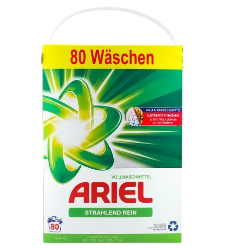 Proszek do Prania Uniwersalny Ariel 5,2 kg – 80 prań to wydajny detergent do codziennego prania, który skutecznie usuwa zabrudzenia i plamy z tkanin białych i kolorowych, zapewniając ubraniom głęboką czystość i świeżośćnawet w niższych temperaturach. Dzięki zaawansowanej formule proszek wnika głęboko we włókna, odświeża zapach ubrań i pomaga chronić kolory przed blaknięciem, co czyni go uniwersalnym wyborem dla całej rodziny.