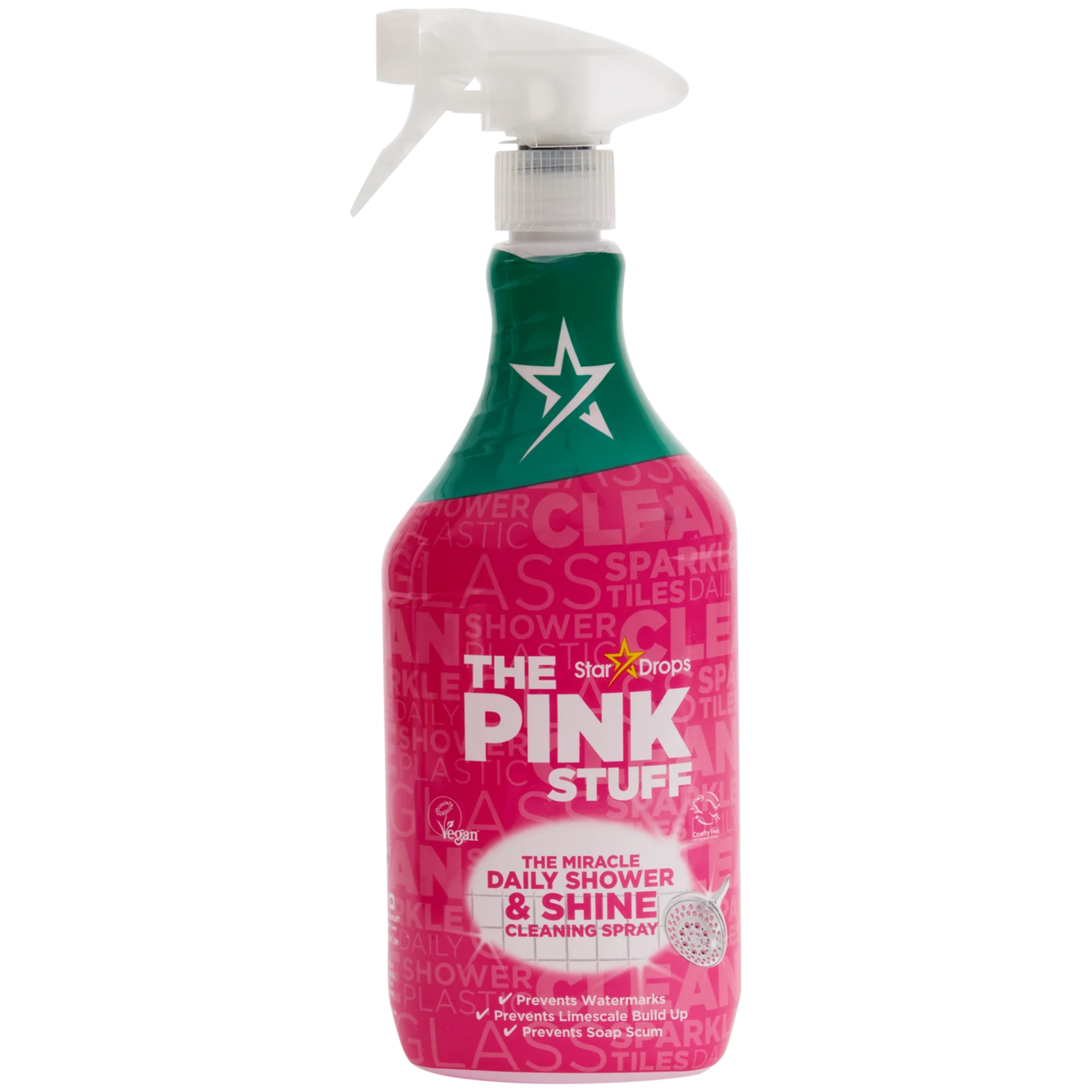 The Pink Stuff The Miracle Shower & Shine to spray czyszczący do łazienki o pojemności 850 ml, zaprojektowany przede wszystkim do codziennej pielęgnacji kabiny prysznicowej, płytek i innych powierzchni w łazience.